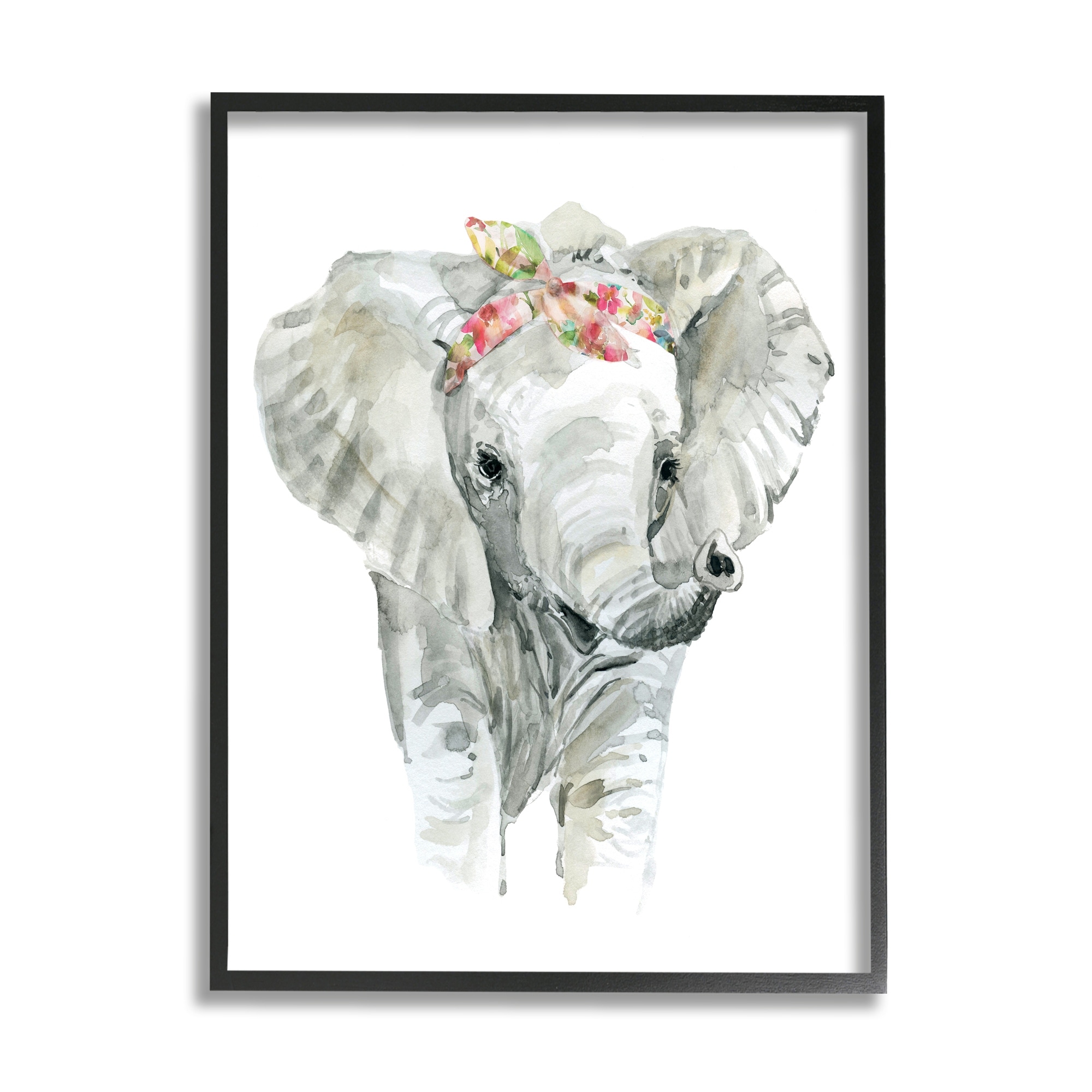 Stupell Chic Baby Elephant with Floral Print Hair Tie Framed Wall Art - Grey