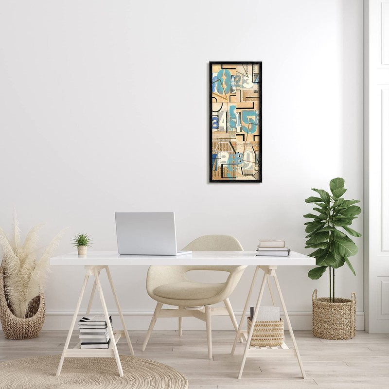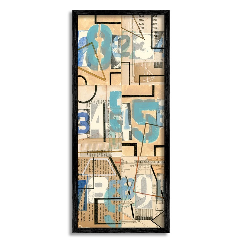 Stupell Industries Abstract Textbook Cutout Collage Bold Painted Numbers, Designed by Nikki Galapon Black Framed Wall Art, 13 x 30, Multi
