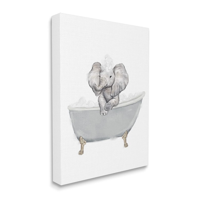 Stupell Industries Baby Elephant Bubble Claw Bathtub Safari Animal Bathroom, Designed by Ziwei Li Canvas Wall Art, 30 x 40, White
