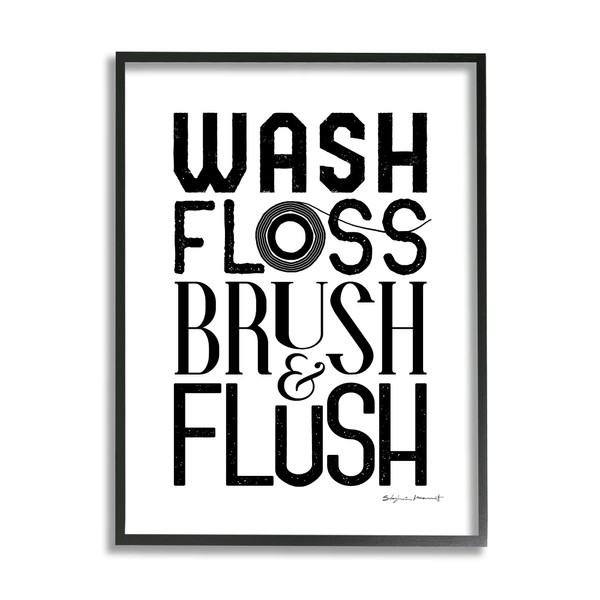 Stupell Industries Bathroom Terms Wash Floss Brush Flush Minimal Text, Designed by Stephanie Workman Marrott Black Framed Wall Art, 24 x 30