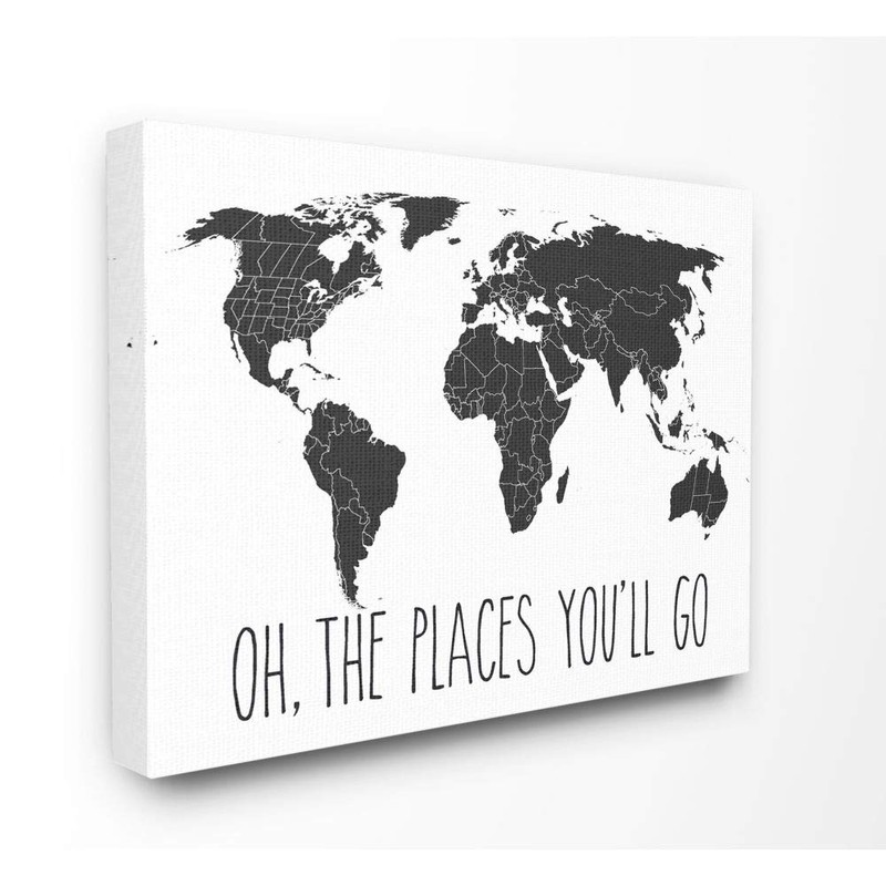 Stupell Industries Black and White Map Oh The Places You'll Go Typography Canvas Wall Art, 16 x 20, Design by Artist Lettered and Lined