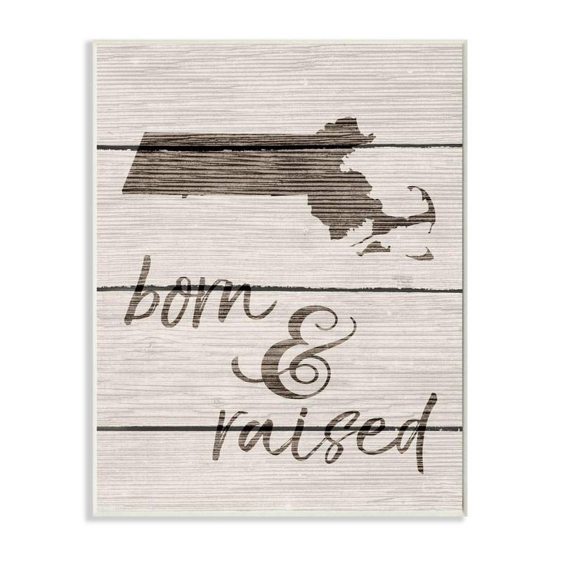 Stupell Industries Born and Raised Massachusetts Wall Plaque, 10 x 15, Design by Artist Daphne Polselli