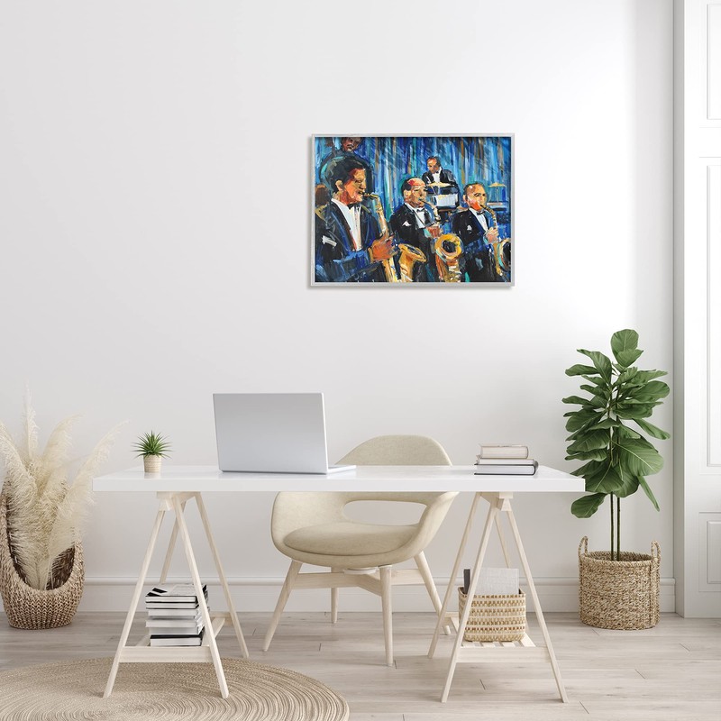 Stupell Industries Contemporary Saxophone Jazz Ensemble Expressive Musicians, Designed by Allayn Stevens Gray Framed Wall Art, 24 x 30, Blue