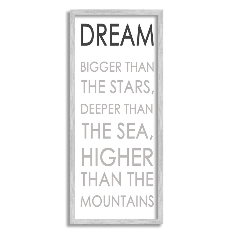 Stupell Industries Dream Bigger Than The Stars Motivational Kids Phrase, Designed by Anna Quach Gray Framed Wall Art, 10 x 24, Grey