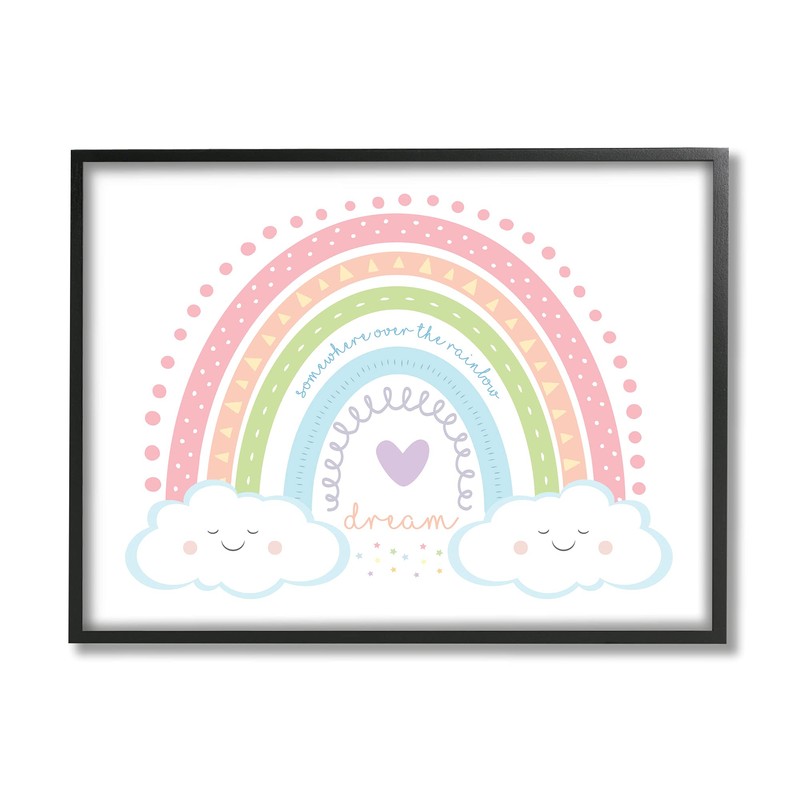 Stupell Industries Dream Over The Rainbow Smiley Face Clouds, Designed by AE Design Black Framed Wall Art, Pink