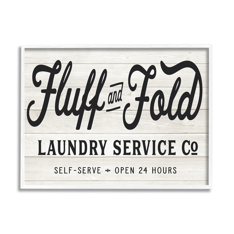 Stupell Industries Farmhouse Fluff and Fold Laundry Advertisement Rustic Pattern, Designed by Lettered and Lined White Framed Wall Art, 24 x 30