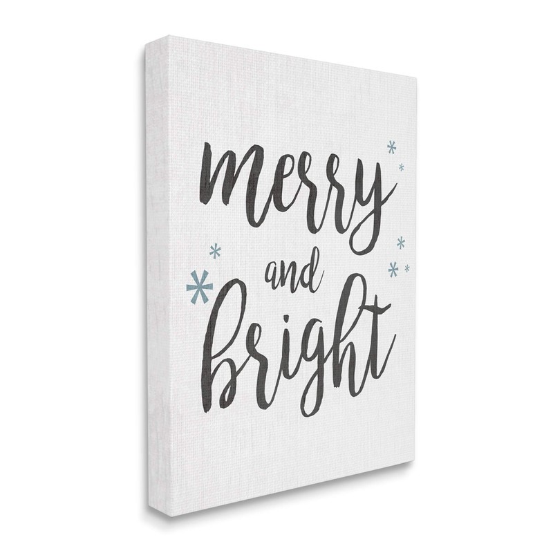 Stupell Industries Festive Merry and Bright Winter Phrase Snowflakes, Design by Anna Quach Canvas Wall Art, 30 x 40, Off-White