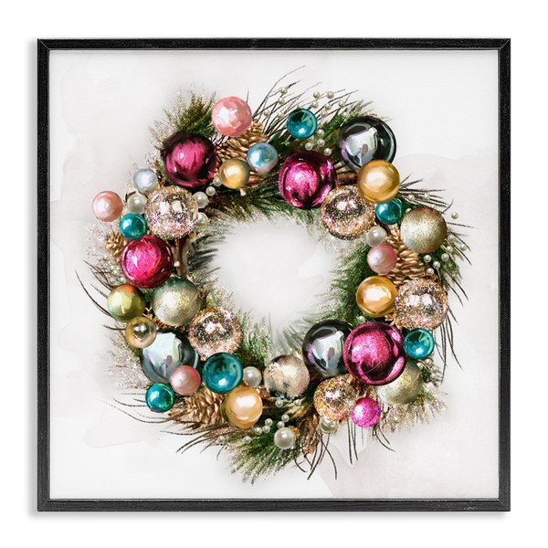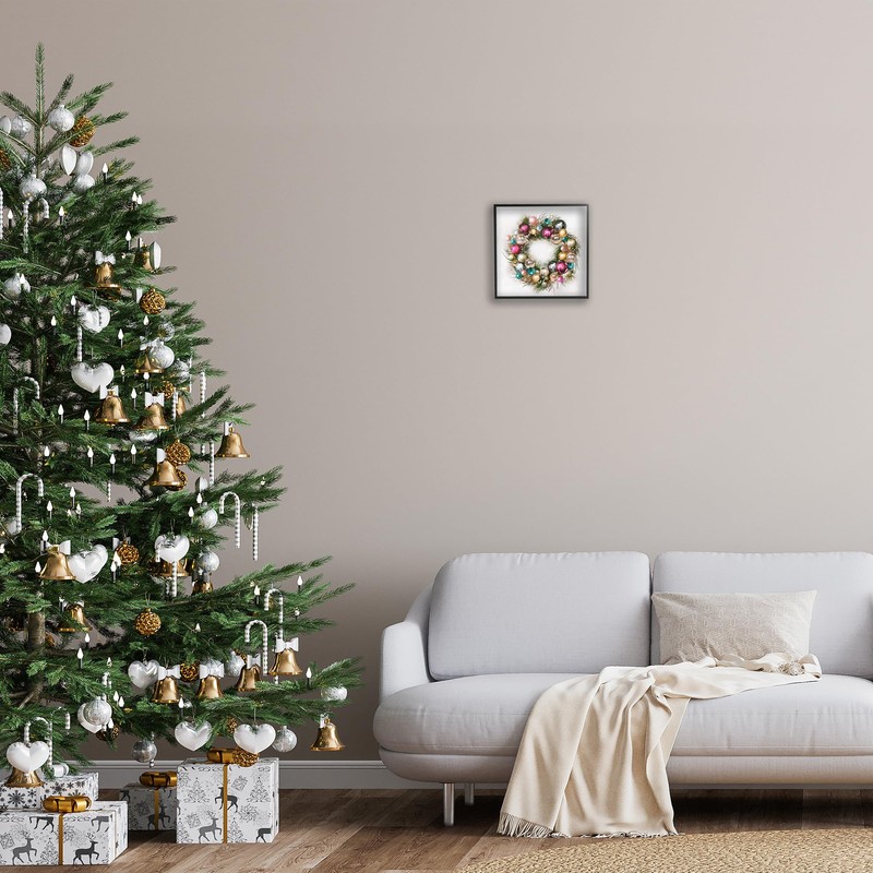 Stupell Industries Festive Ornamental Wreath Minimal Christmas Charm, Design by Ziwei Li Black Framed Wall Art, 12x12, White