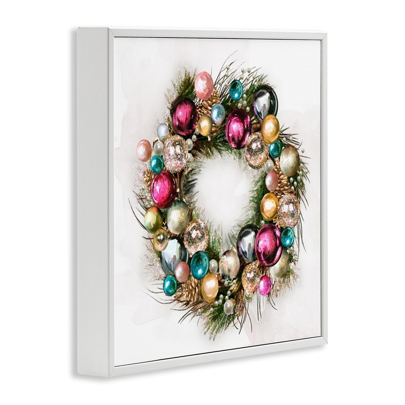 Stupell Industries Festive Ornamental Wreath Minimal Christmas Charm, Design by Ziwei Li White Framed Wall Art, 12x12