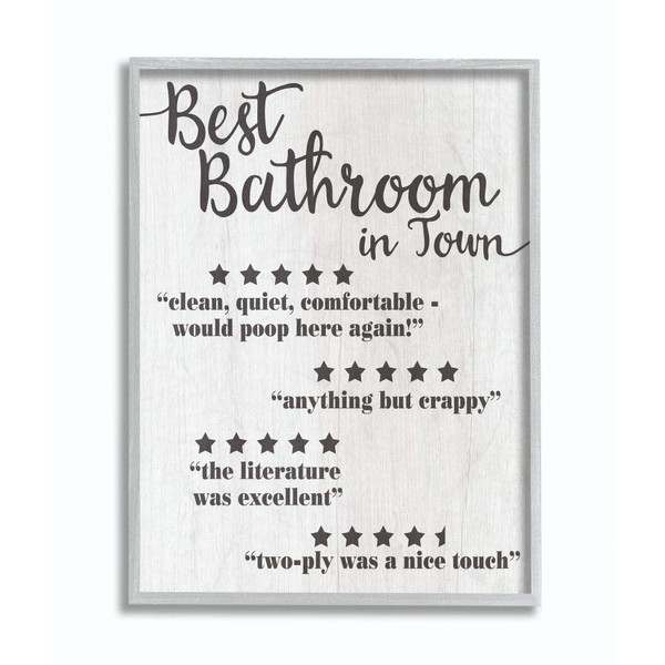 Stupell Industries Five Star Bathroom Funny Word Black and White Textured Design Gray Framed Wall Art, 11x14, Multicolor