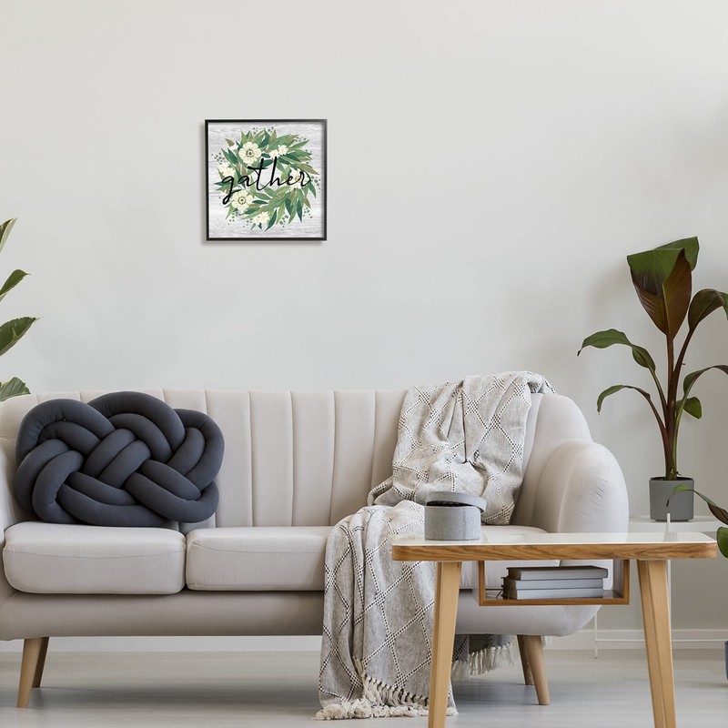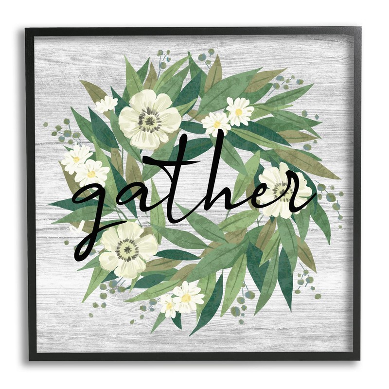 Stupell Industries Gather Calligraphy Wreath Country White Botanicals Blossoms, Design by Ziwei Li