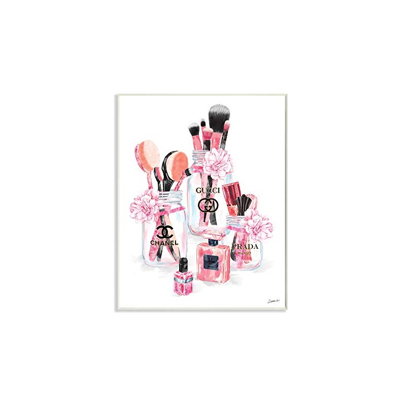 Stupell Industries Glam Fashion Cosmetic Accessories in Jars, Designed by Ziwei Li Wall Plaque, 13 x 19, Black