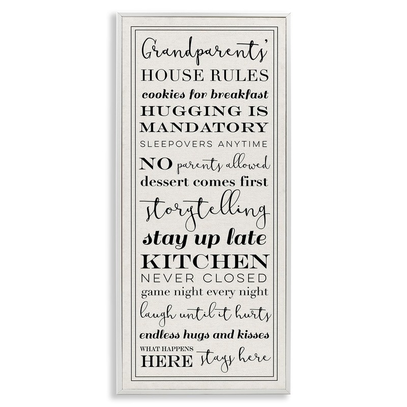 Stupell Industries Grandparents House Rules, Design by Daphne Polselli White Framed Wall Art, 13x30, Beige