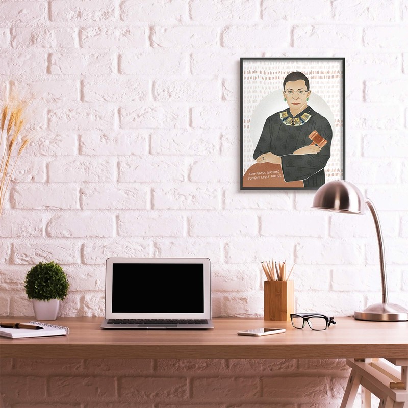 Stupell Industries Judge Ginsburg with Gavel Over Abstract Pattern, Designed by Ziwei Li Black Framed Wall Art, 24 x 30, Multi-Color