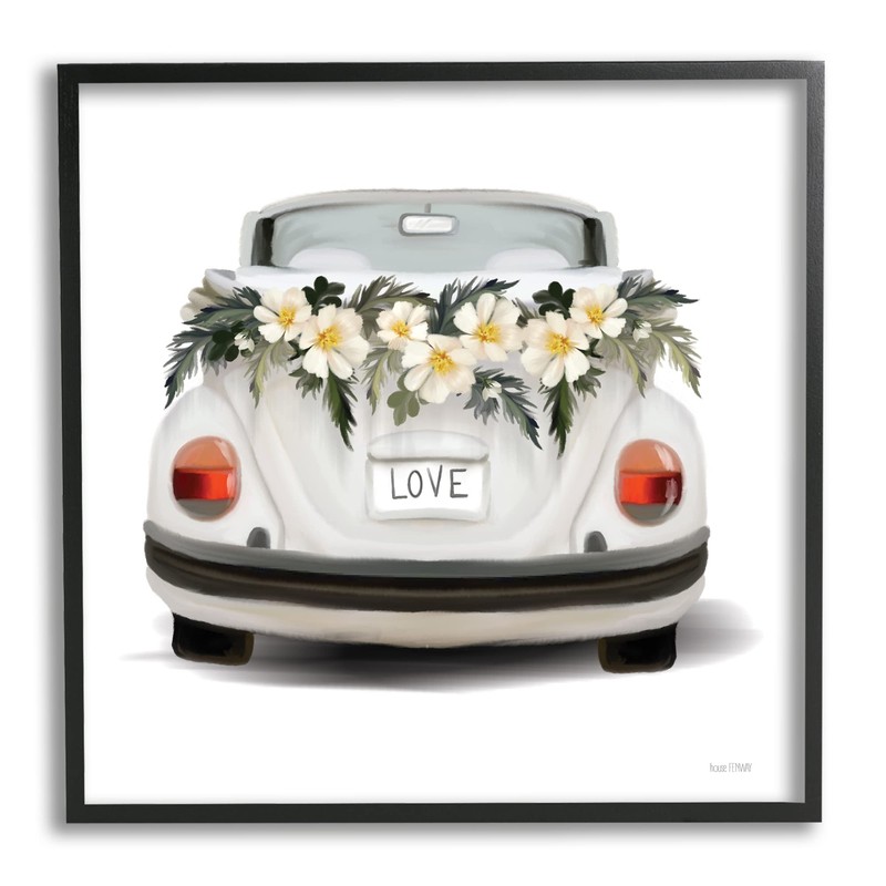 Stupell Industries Love Text White Convertible Car Flower Blossom Wreath, Design by House Fenway
