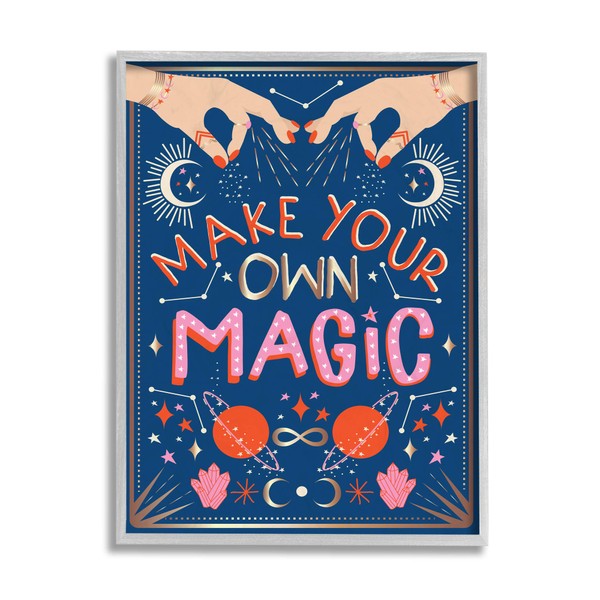 Stupell Industries Make Your Magic Phrase Fashion Hands and Constellations, Design by Hannah Heemsbergen Grey Framed Wall Art, 16 x 20, Blue