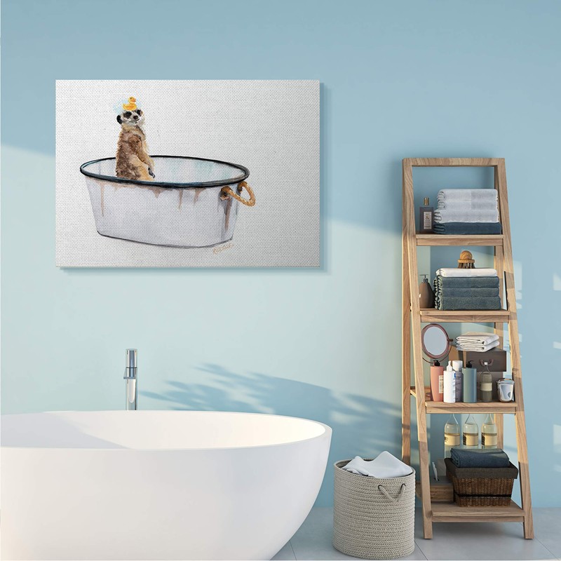 Stupell Industries Meerkat Bubble Bath Vintage White Tin Tub, Design by Jennifer Redstreake Canvas Wall Art, 36 x 48