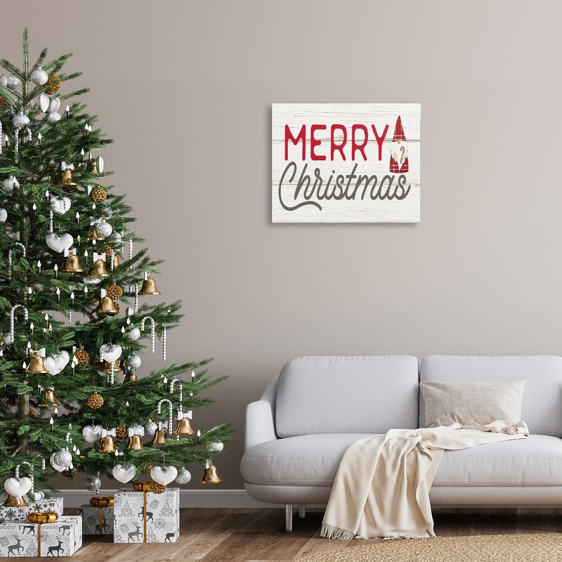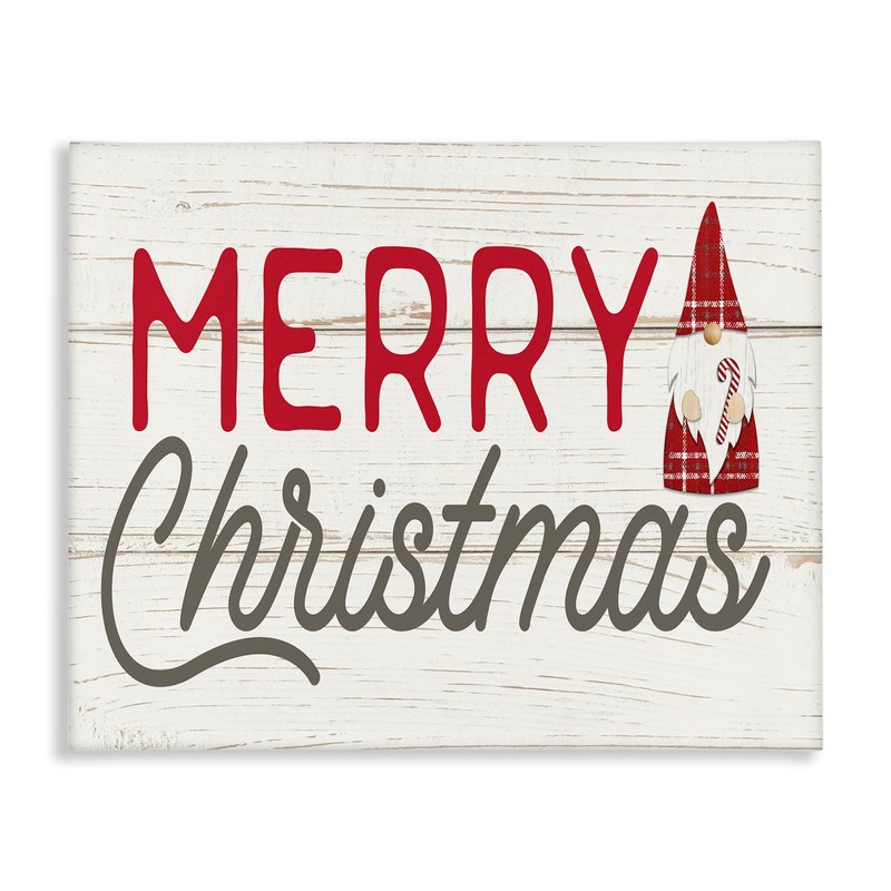Stupell Industries Merry Christmas Sentiments Festive Holiday Gnome, Designed by PDR, LLC Canvas Wall Art, 24x30, Off- White