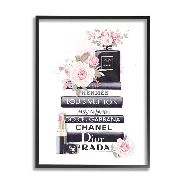 Stupell Industries Pink Roses and Toiletries Fashion Glam Bookstack, Designed by ROS Ruseva Black Framed Wall Art