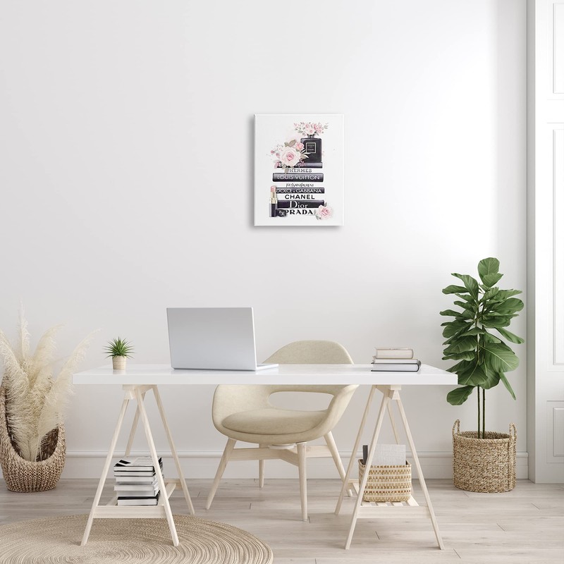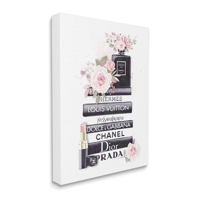 Stupell Industries Pink Roses and Toiletries Fashion Glam Bookstack, Designed by ROS Ruseva Canvas Wall Art, Black