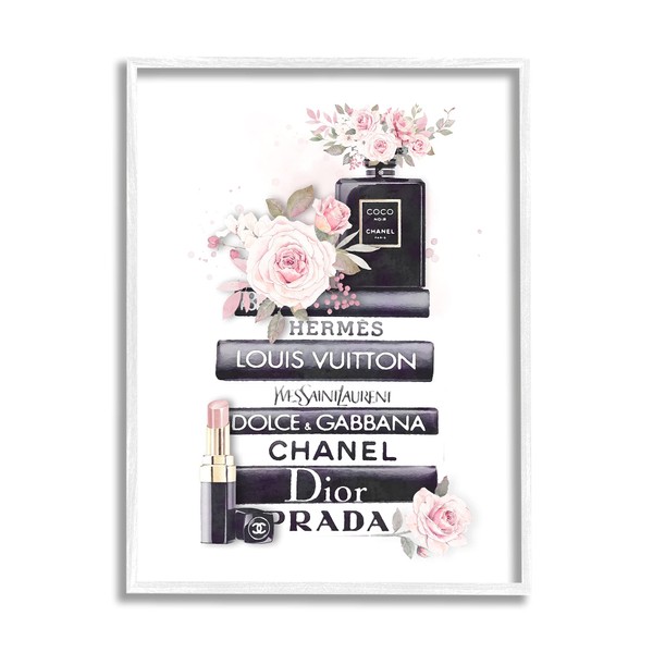 Stupell Industries Pink Roses and Toiletries Fashion Glam Bookstack, Designed by ROS Ruseva White Framed Wall Art, Black