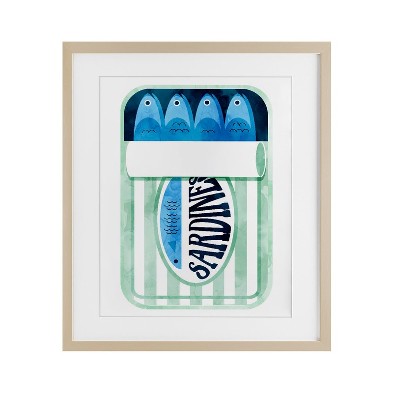 Stupell Industries Sardines in Striped Can Birch Framed Print Under Glass design by Lil' Rue, 21 x 17