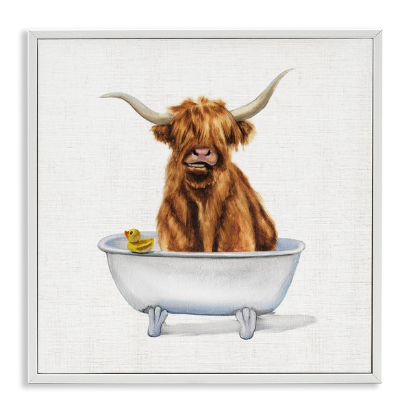 Stupell Industries Shaggy Country Cattle in Bathtub Rubber Duck, Designed by Donna Brooks White Framed Wall Art, 24x24, Brown