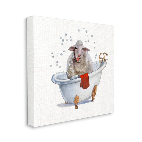 Stupell Industries Shaggy Sheep in Bubble Bath Playful Farm Animal, Designed by Donna Brooks Canvas Wall Art, 30 x 30, Red