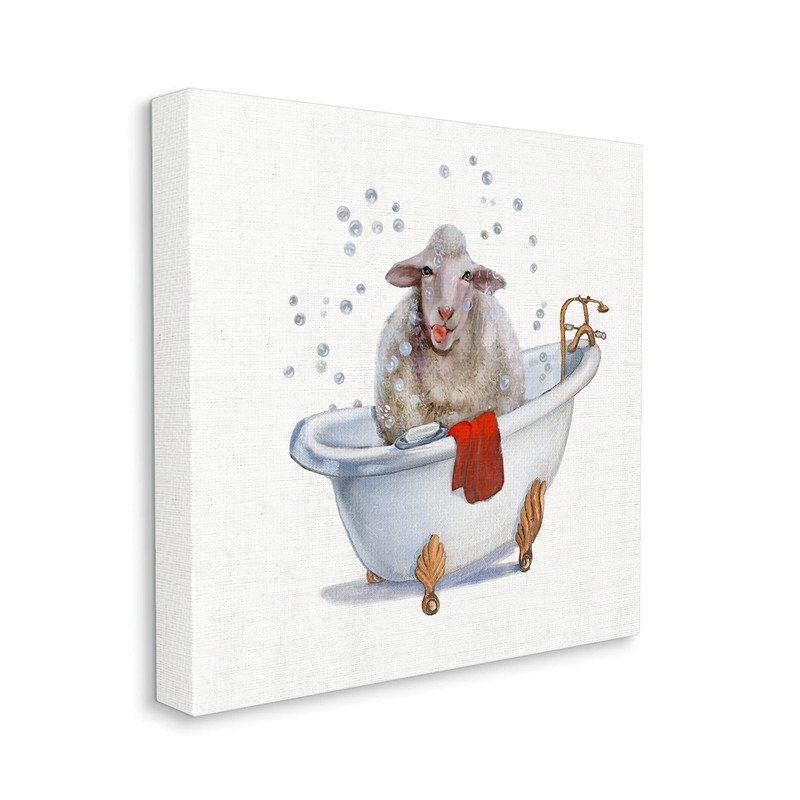 Stupell Industries Shaggy Sheep in Bubble Bath Playful Farm Animal, Designed by Donna Brooks Canvas Wall Art, 36 x 36, Red