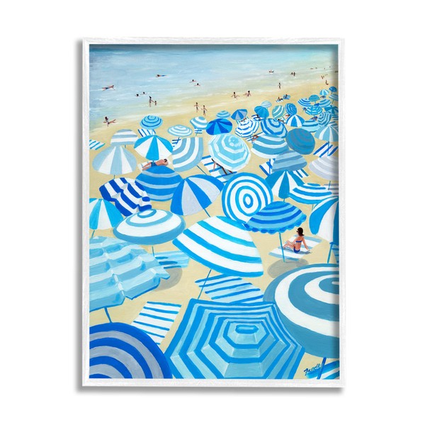 Stupell Industries Striped Coastal Beach Umbrellas Framed Wall Art, Design by Life Art Designs