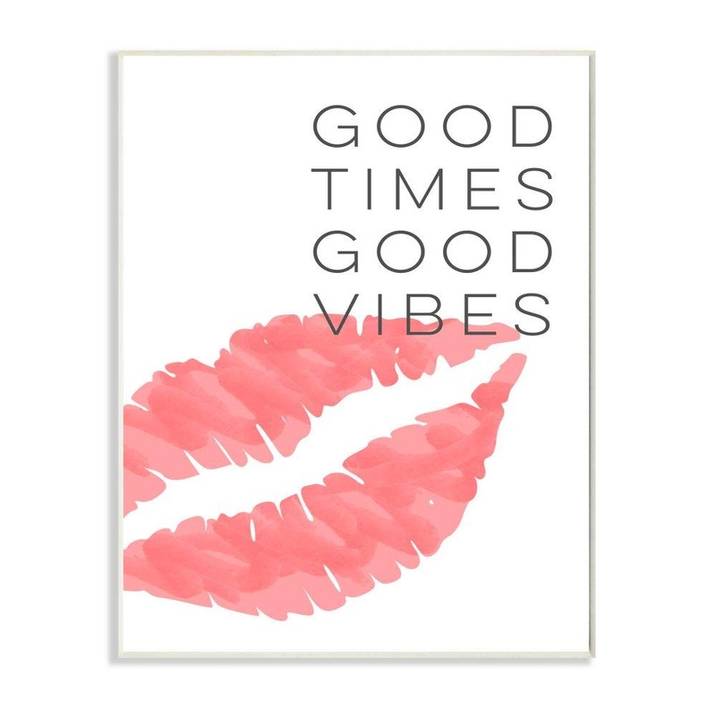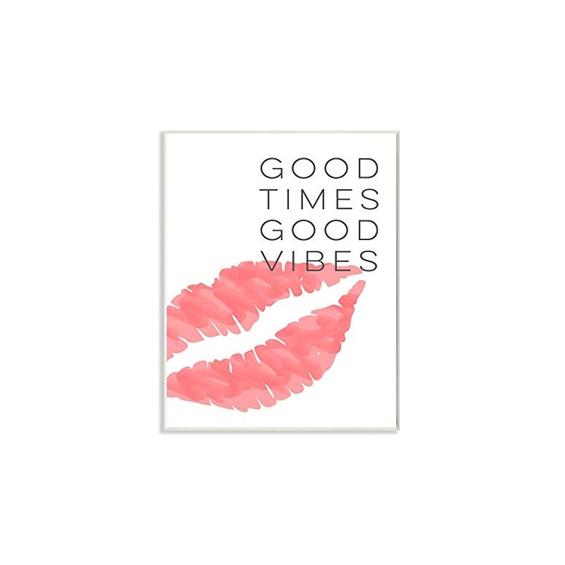 Stupell Industries Times Good Vibes Lip Print Wall Plaque, 13 x 19, Design by Artist Daphne Polselli