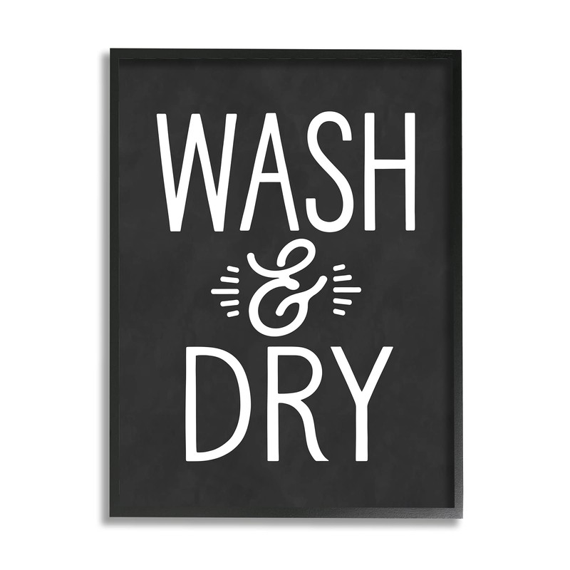 Stupell Industries Wash and Dry Vintage Cleaning Phrase Kitchen Laundry, Design by Lettered and Lined Black Framed Wall Art, 16 x 20