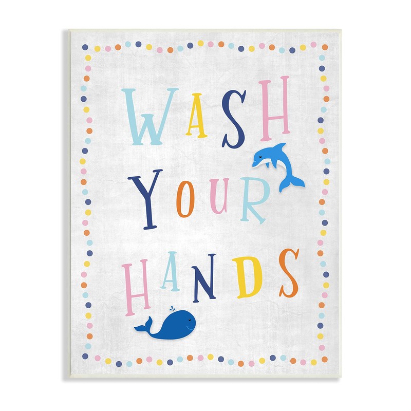 Stupell Industries Wash Your Hands Bathroom Sign Playful Dolphin Whale, Desig...