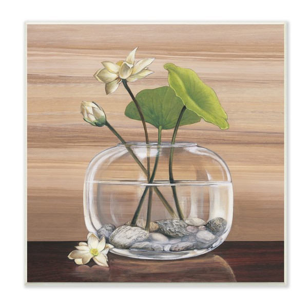 Stupell Industries Water Lilies and Lilypad in Vase Still-Life, Designed by Yuki Ross Wall Plaque, 12 x 12, Brown