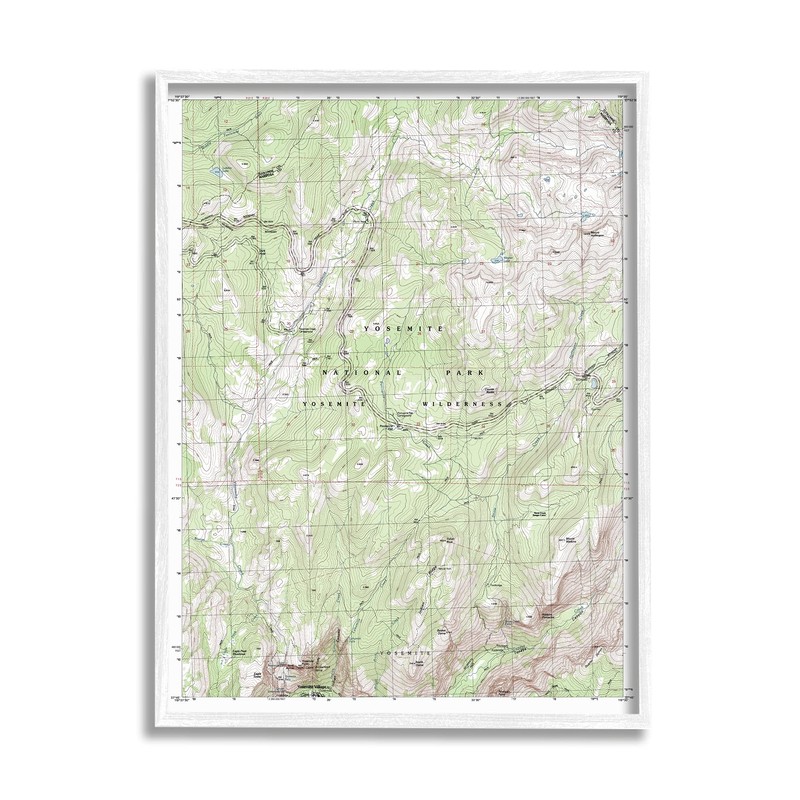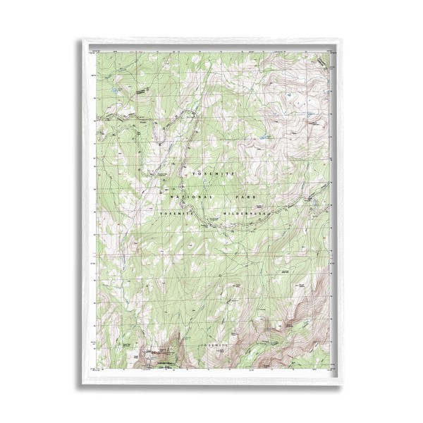 Stupell Industries Yosemite National Park and Wilderness Topographic Map Geography, Design by Daphne Polselli White Framed Wall Art, 16 x 20, Green