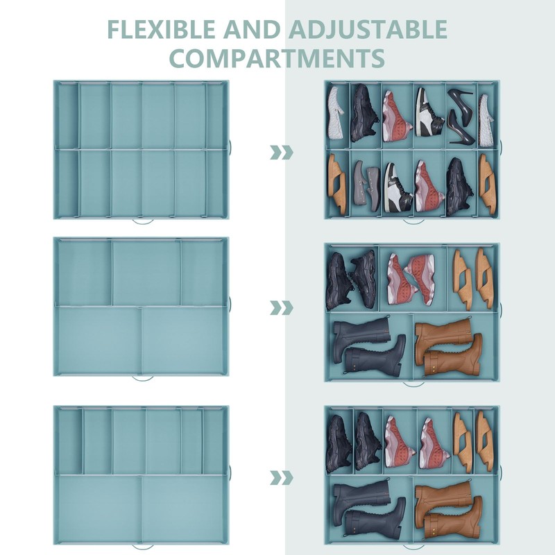 - 👞【Adjustable Compartments of Different Sizes】: Compared to other under bed shoe storage organizers with fixed compartments, this homyfort shoe organizer under bed with adjustable dividers, you can customize the compartments into different sizes to meet your various storage needs.