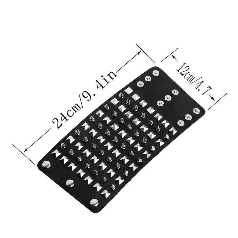 STWTR Unisex Black Metal Spike Studded Punk Rock Biker Wide Strap Leather Bracelet