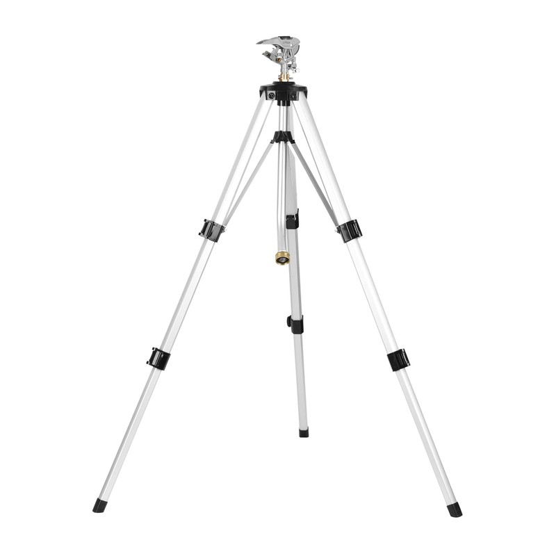 - HEAVY DUTY METAL CONSTRUCTION - This tripod sprinkler is constructed of durable and sturdy zinc alloy, making it to be able to withstand high water pressure and severe weather conditions without breaking, rusting or corrosion. Its heavy duty construction brings it with a terrific anti-tipping feature, allowing it to stay stable in the areas with higher levels of wind.