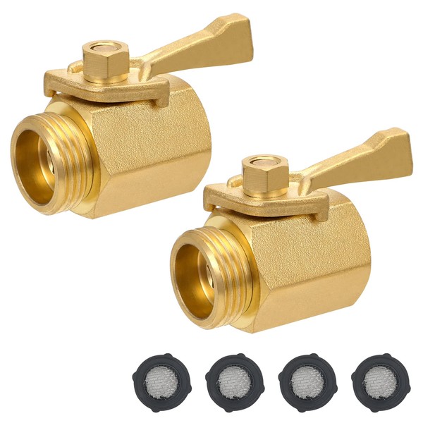 STYDDI Super Heavy Duty Garden Hose Shut Off Valve, 2 Pack Solid Brass Water Hose Shut-off Ball Valve Adapter Connector with 4 Extra Rubber Washers