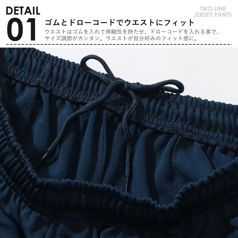 - Specifications: Elastic waist, tie down waist, left and right pockets, straight hem, plain, outside color lines, smooth