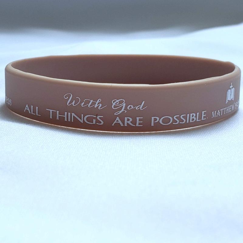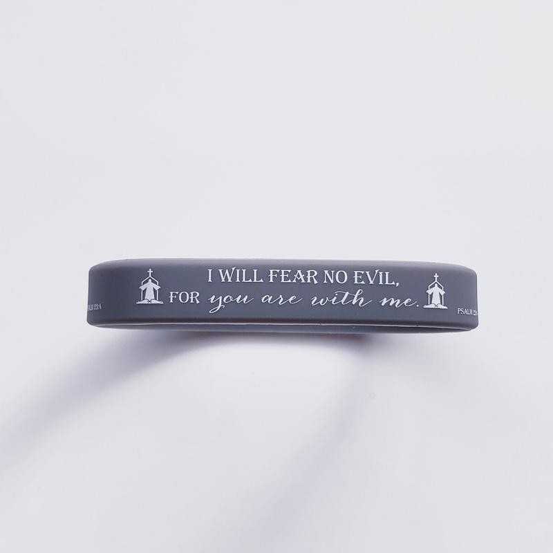 Silicone wristband printed in cursive writing with inspirational bible verses to keep you grounded and strong within your faith
