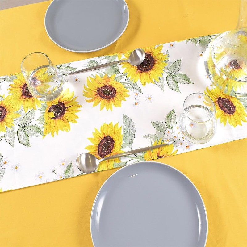 Style Decor W2604210 Table Runner, Reversible, 100% Cotton, Nordic, Stylish, Table Center, 11.8 x 51.2 inches (30 x 130 cm), Soleil Sunflower