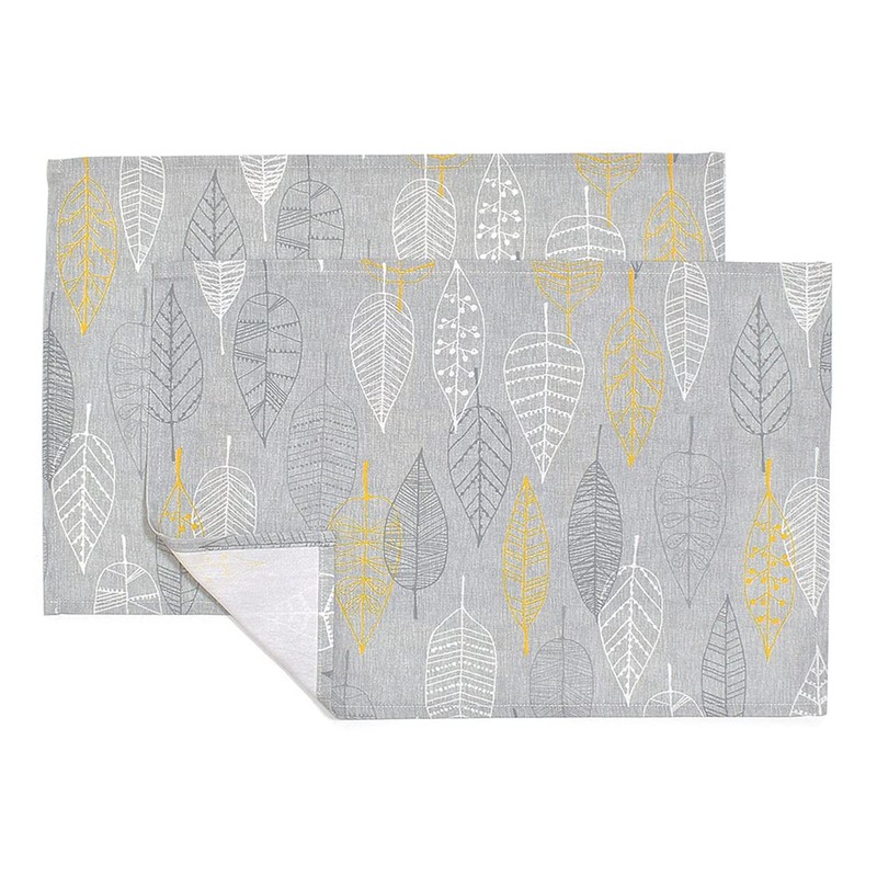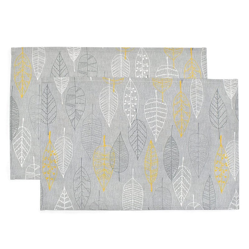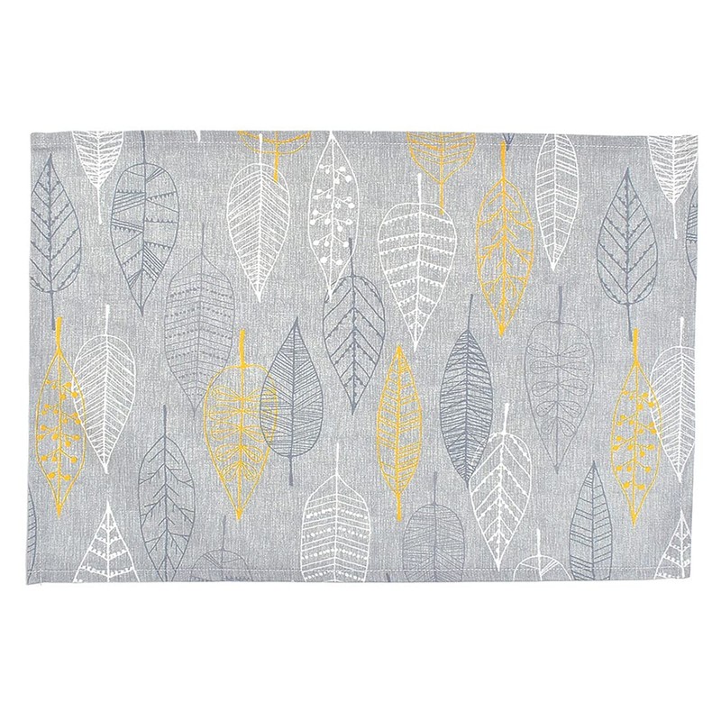 Style Decor W2802300 Placemat, 100% Cotton, Set of 2, Washable, Fabric, 11.8 x 17.3 inches (30 x 44 cm), Standard, Gray, Leaf, Simple