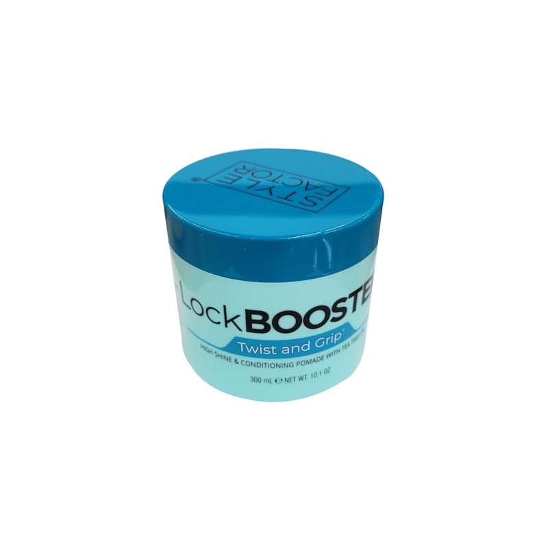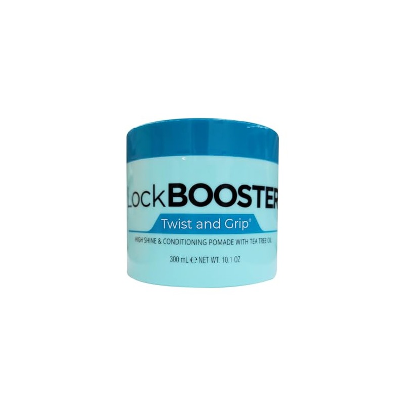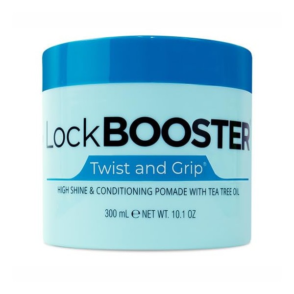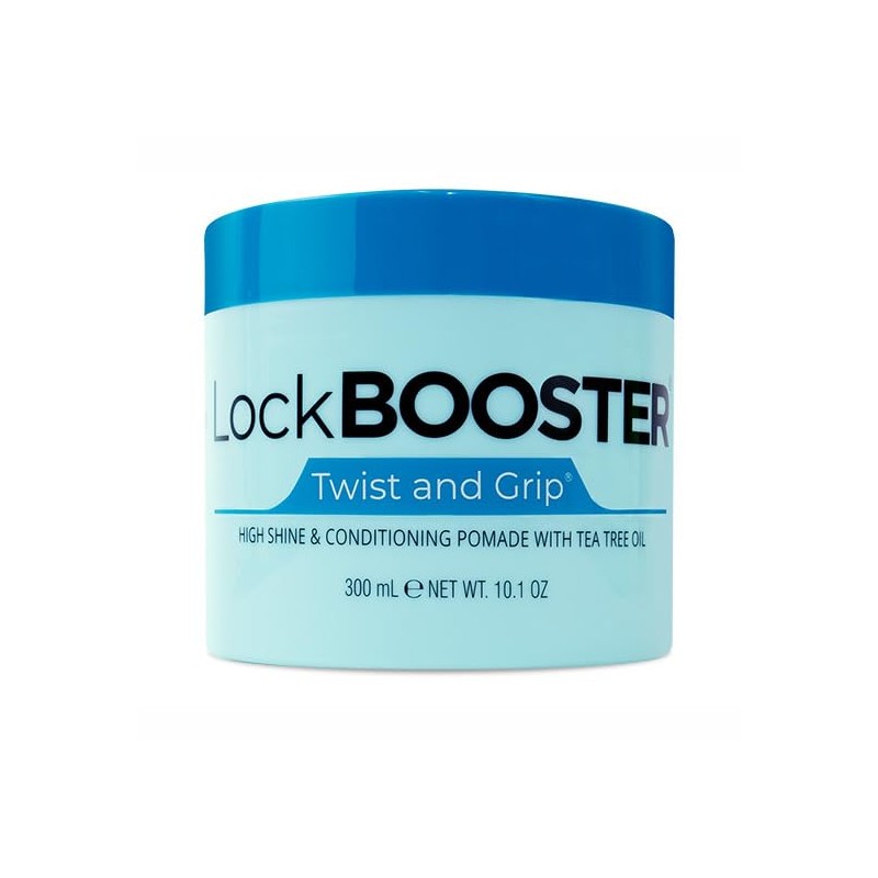 LockBooster Twist and Grip High Shine and Conditioning Pomade provides moisturization for a sleek, shiny look and strengthening properties that help maintain a strong hold for versatile hair styling. Achieve ideal twists, locks, and braids with a long-lasting strong hold while securing shine and taming frizz