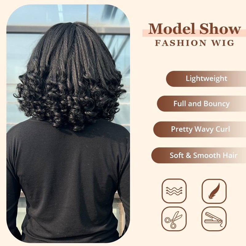 Style Icon 12” Short Afro Curly Ends Wig Wear-to-go Fluffy Yaki Black Wig Middle Part Soft Synthetic Wig