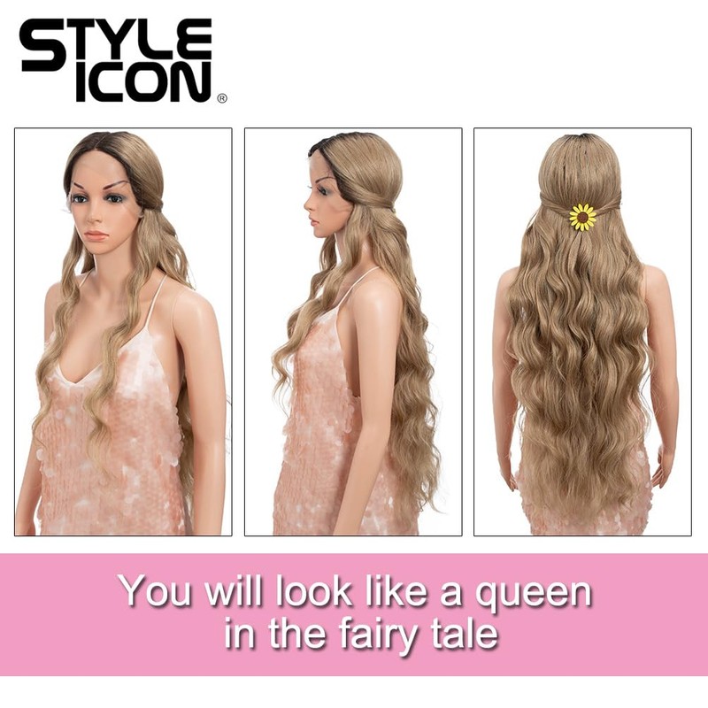 Style Icon 36" Lace Front Wigs Super Long Middle Part Wavy Wig With Baby Hair 130% Density Synthetic Wig(36 Inches, RT6/23C)