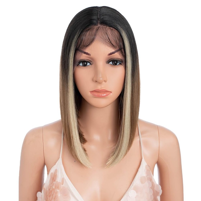 Style Icon Bob Wig Lace Front Wigs for Black Women Straight Synthetic Wig 130% Density High Temperature Fibre (12 Inches, BTHL427613)