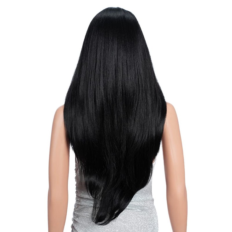 Style Icon Wig Lace Front Wigs 26 Inches Layered Wigs with Bangs Door Curtain Style Super Long Wigs Synthetic Wig 5 Inches Middle Part Wig (26 Inches, 1B)