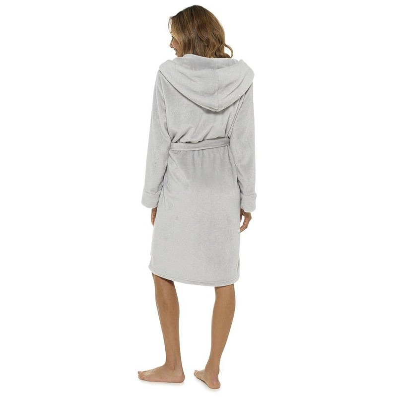 Ladies Womens Frosted Borg Hooded Robe Soft Warm Luxury Lounge Dressing Gown