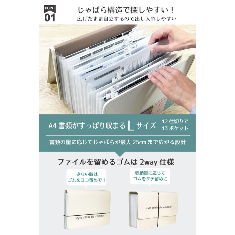 - (Freestanding and easy to find) With a contracted accordion, it can be expanded according to the amount of documents. It can stand up on its own, so it can be easily inserted and taken out, and it expands to about 9.8 inches (25 cm), making it easy to see and find. The elastic to hold the file in 2 ways can be fastened vertically or horizontally depending on the capacity